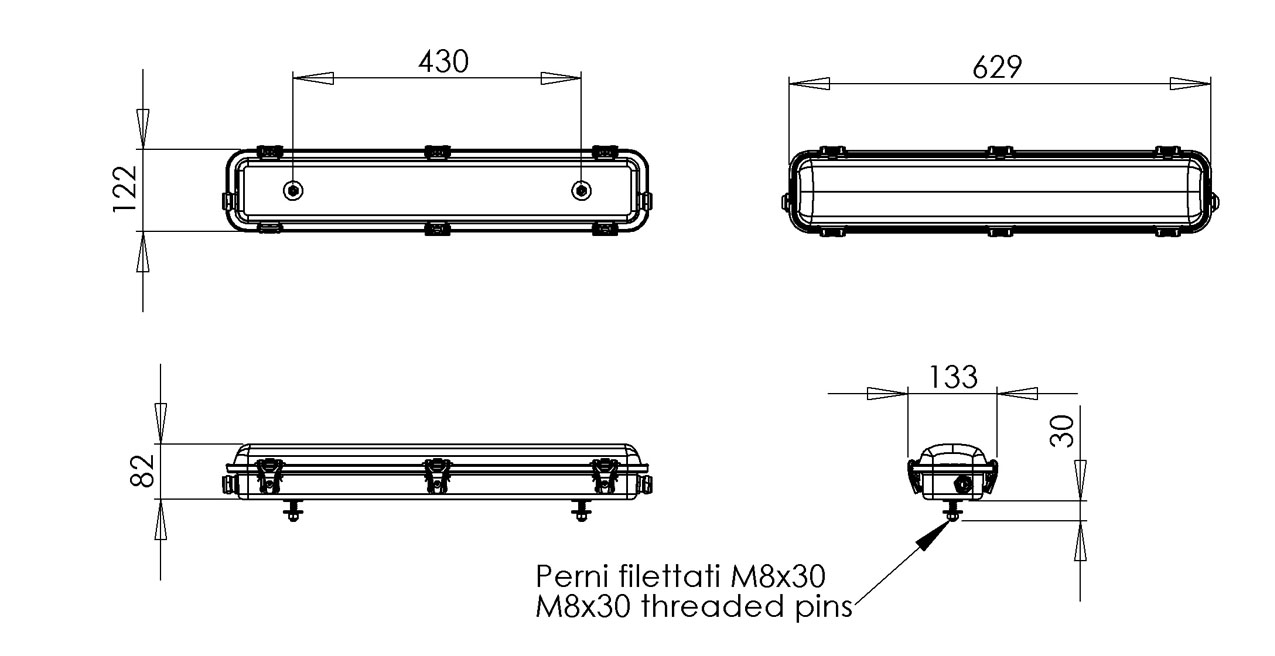 | Mounting | M8 treaded pin with nut on preinstalled bushing, all stainles steel AISI 316L |