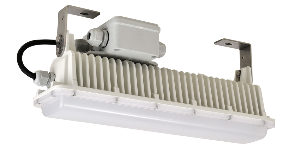 Multipurpose white LED light fixture for inside and outside technical areas (-40°C). Housing white RAL9010