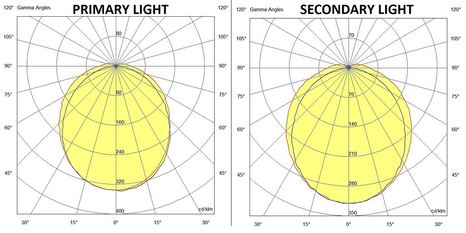 White primary + White secondary independent LED lights in the same fixture. Secondary light direct 24 V DC input