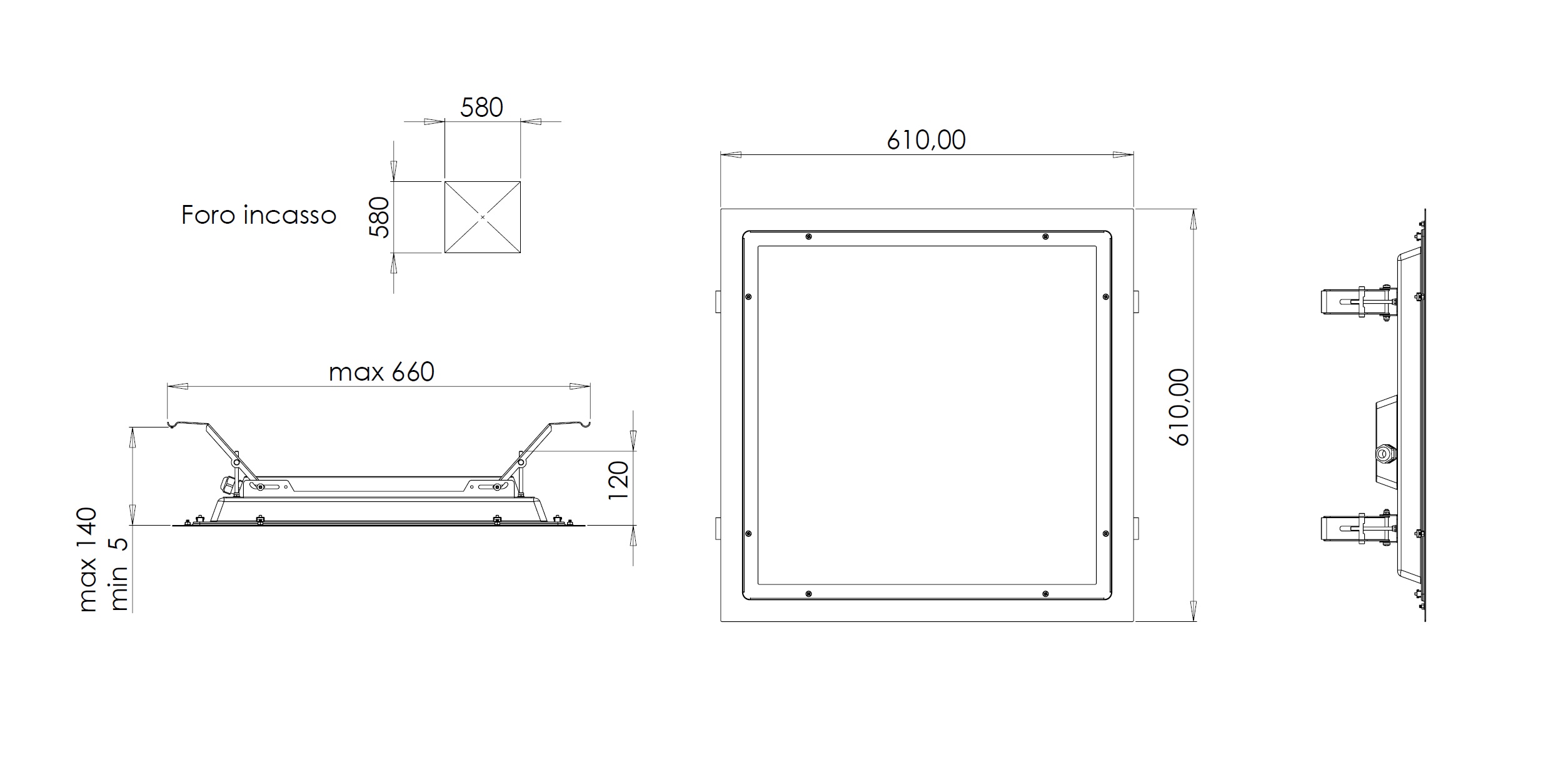 | Dimensioni della Lampada | 610x610x120mm - 7kg |